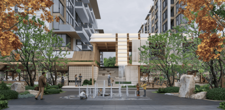 你能听见风吹过树叶的沙沙声,水景的潺潺声,儿童区传来的笑声。没有城市的心跳,只有生活的呼吸。