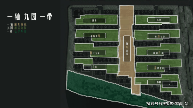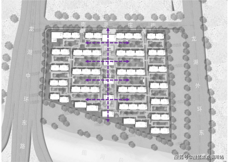 项目外围为市政公园所围合,小区内部精心打造中轴核心景观,从开放到私享,多重景观空间逐级递进,过渡自然。同时对话龙尾河,引入滨河景观,拉长轴线,形成超大景观视线通廊,提升社区整体舒适度。