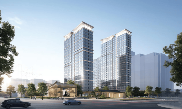 新中式搭建的硬质建筑特色,低密腾挪出来的园林景观,化作一抹新鲜的“东方青绿”,喂给高容高密的汉口内环,留下一处得以喘息的生活净土。