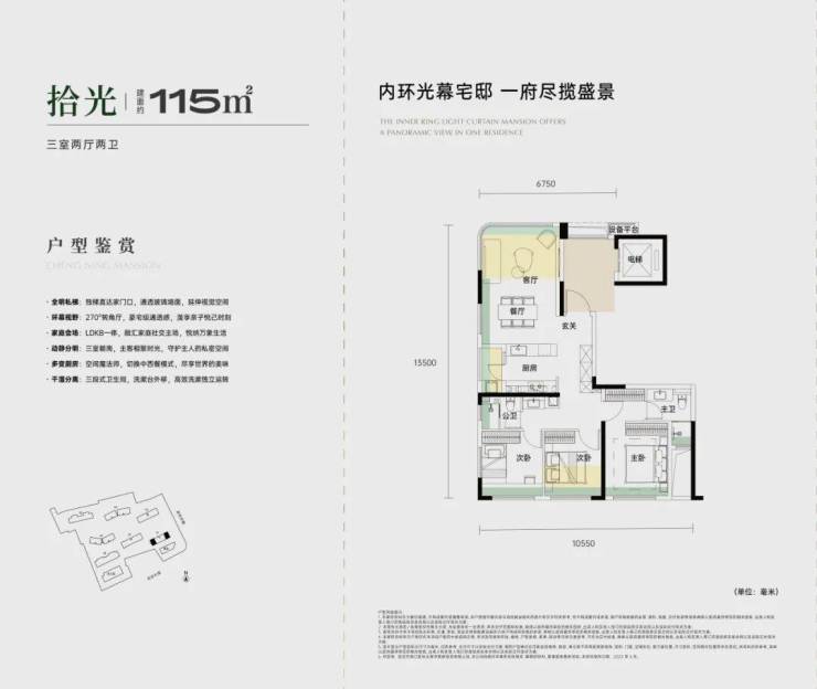 此前,同类设计手法,常见于二七滨江、武昌内环滨江的江景大平层,至少200㎡以上,才能拥有如此阔绰的设计,反观承宁府的115㎡,无异于武汉同面积里的凤毛麟角。