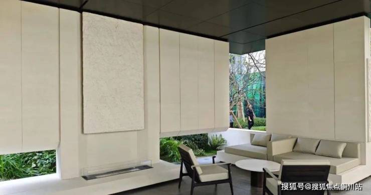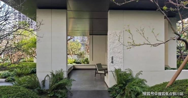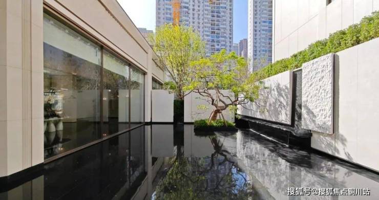 步入园区之后扑面而来的是度假感,水院围合出的一方天地让繁华与宁静在此转身,浓荫下是盈润流水,拂拭城市的喧嚣,让回家的心情在这里转换。“ 院落式景观、水院、树池、与矮景墙穿插,艺术水院 ”等场景打破建筑与室外的边界,室内外有机渗透,塑造层层递进的舒缓场景。
