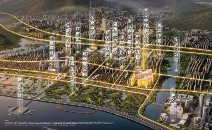 一面是精粹的繁华,江南里、乐清市体育中心、乐清实验小学(滨海校区)等资源集聚,打造一站式丰盛生活圈;另一面是绿意的交织,坐拥胜利塘公园、东运河公园双园头排,以及规划中的海洋牧场公园,堪称滨海新区的森林氧吧,构成生态宜居的健康底色。