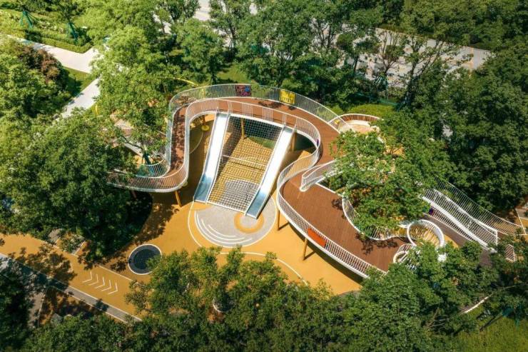 注意看,就连滑梯的颜色,江心印园都做成了更好看的渐变色!好一个审美大师,名不虚传!