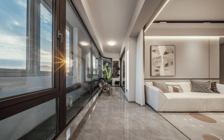 项目100方样板间弧形阳台实景图