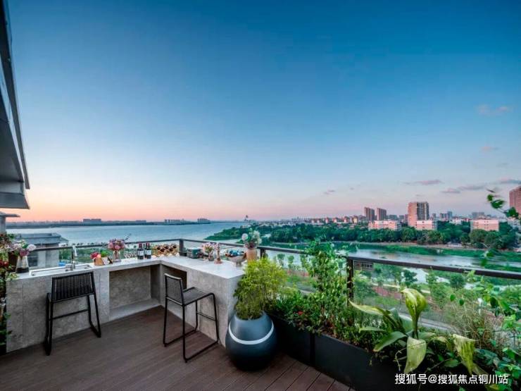 顶层露台,可以用来养花种菜,实现“有天有地”,再做个吧台,闲暇时约三五好友,在清新的湖风吹拂下,开一瓶红酒,或者来个BBQ,自是闲适十足;二层的露台,可以作为休闲阳台,放个小圆桌,摆上椅子,和爱人、孩子看看书、聊天,抬眼可见的后官湖风景,能够安抚一天的疲惫。