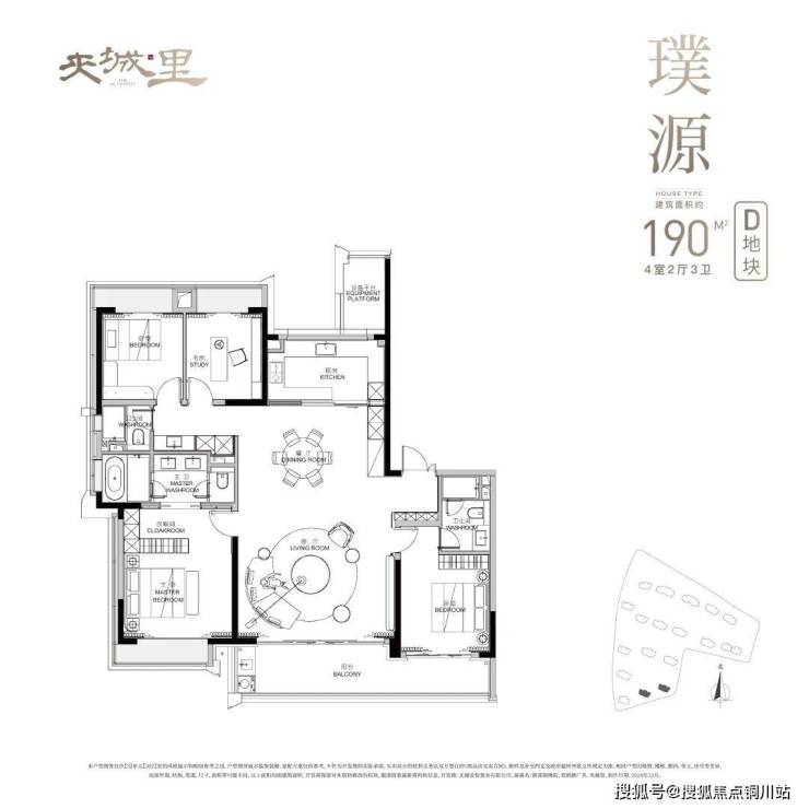 建面 190㎡户型:4 居室,分布于 7 号楼、6 号楼、12 号楼、28 号楼等,2 梯 2 户,层高 3.15 米,总楼层 15-16F。