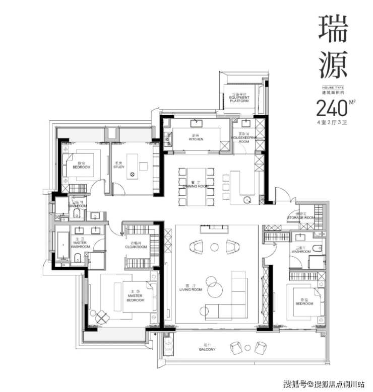 建面 240㎡户型:4 居室,分布于 5 号楼、3 号楼、9 号楼、2 号楼等,2 梯 2 户,层高 3.15 米,总楼层 16F,价格在 900-1000 万。