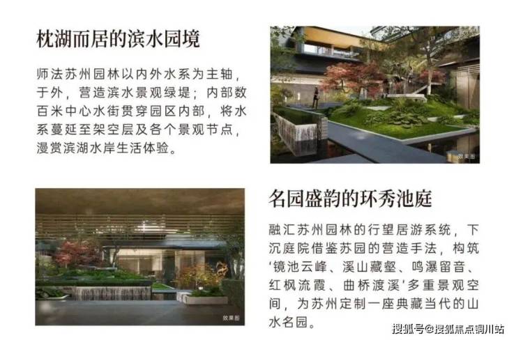 依凭半岛三面水岸的天然资源,以“一堤三面湖”和“水街襟两园”设计笔触,实现滨水互动、开门见水的场景体验;融汇吴门画派、苏州园林造园理念,营造出一座温润如玉的流动庭园。