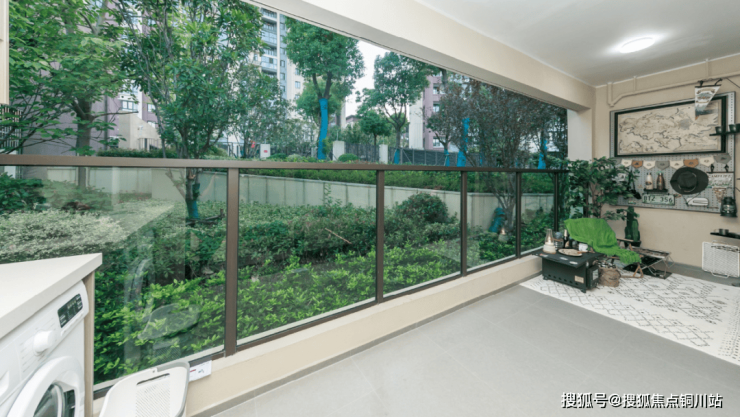 南向的宽敞双联阳台,能同时满足放洗衣机、晾晒衣服、搞阳台露营、做小书吧的需求。