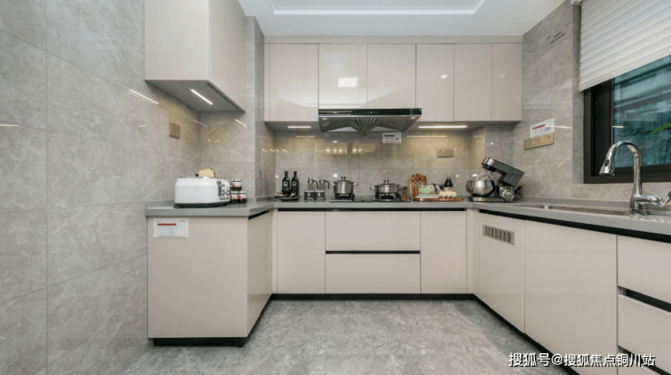 这个户型的U型厨房实用与美感完美融合,三面环形的台面将洗涤区、烹饪区及操作台等空间科学规划,配备充足的厨柜,完美收纳。