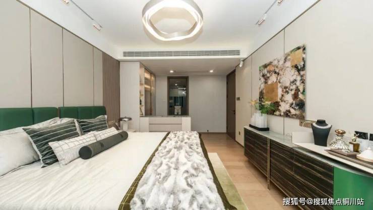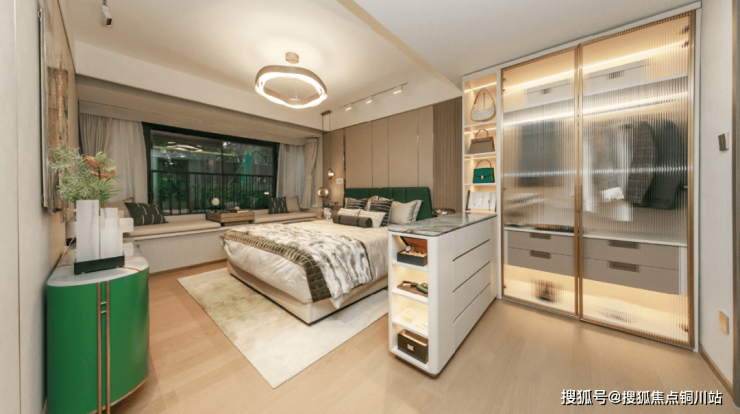 这个户型还做了主卧套房的设计,不仅拥有南向大飘窗、独立卫浴、步入式衣帽间,可容纳N种休闲场景,而且南北通透,采光和通风也不在话下。