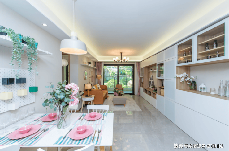 餐客厅一体打造成宽敞舒适的横厅,与阳台连接,提高整体使用面积,让空间更显阔绰,营造亲民居家生活。