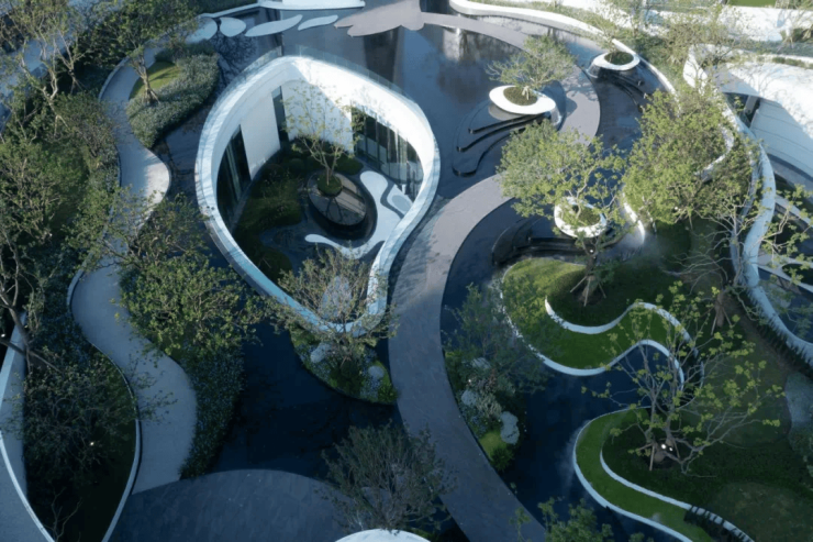 园林景观:独创性地提出外置消防登高面,为自然景观设计预留下大量空间,打造出 “珠宝上的园林”,营造出浪漫人居场景 “莫奈花园”。还以 “垂直园林” 理念设计双层连廊,打通楼栋间的互通屏障,让业主雨天也能实现无障碍社交。