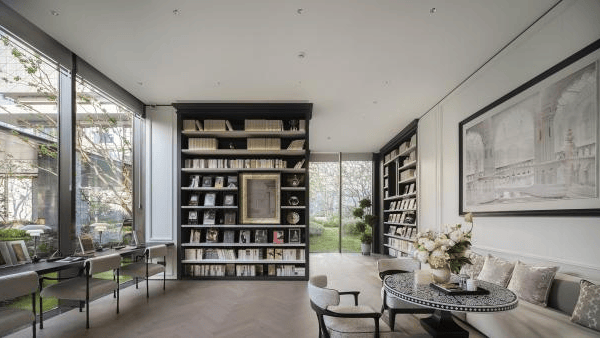延续一期“有氧律动、逐梦空间、会客雅集”泛会所理念,二期首层架空设计,全景落地窗引景入室,融合太太的会客厅、运动元气场,儿童成长盒子等多功能于一体,实现与生活的无界对话,构筑全龄开放、自然、品质、关怀的的社区场域,重新定义塔尖圈层的社交方式。