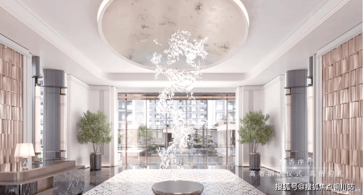 馥香园的门头设计,以米阔绰的山茶花花瓣为灵感,呈现出一派别致的美学风格。这种设计在宁波尚属首次,其黄金比例的分割彰显出绿城对美学的深厚造诣。门头两侧,铜制雕塑与水景叠瀑相映成趣,不仅增强了昭示性,更赋予了此地一种地标性的封面意义。