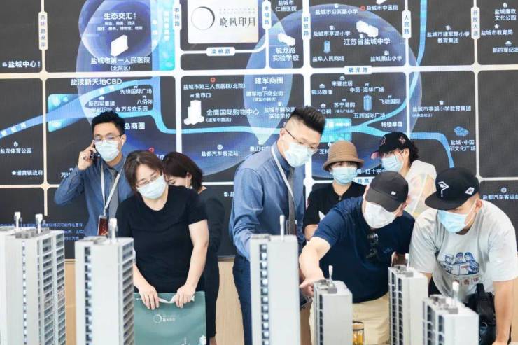 售楼部内的沙盘边、休憩区、样板间,全都围满了置业人群,火爆程度一度在盐城刷屏。项目置业顾问,更是忙得脚不沾地,不是在接客户,就是在接客户的路上。前台的电话咨询处,也是电话不断,不断有购房者打进来咨询项目。