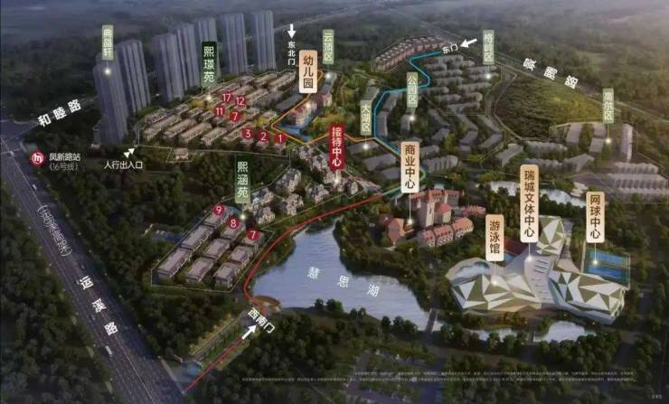 该住宅项目占地500亩,其中300亩用于住宅建设,已建成并交付了1600户低密度住宅;另外200亩用作旅游用地,内设有瑞城体育文化中心、希尔广场以及慧思湖等休闲娱乐设施。开发商为杭州瑞成房地产开发有限公司,由广瑞集团股份有限公司和瑞立集团有限公司联合发展。