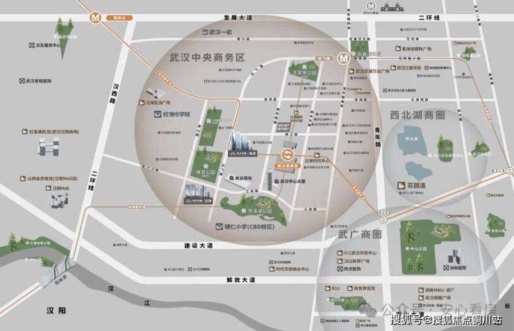 项目位于江汉区武汉CBD板块,距离二环线直线距离约900米,属于二环内。