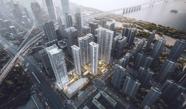 又如,我们认为已做到极致、近乎“零管线”的曲线外立面,开发商在反复观察、考量后,觉得北立面采用平面铝板+玻璃全包有点“单调”,在施工大半的时候拆掉重来,才有了现在立体感更强的折线造型,成就了全武汉外立面的颜值巅峰!