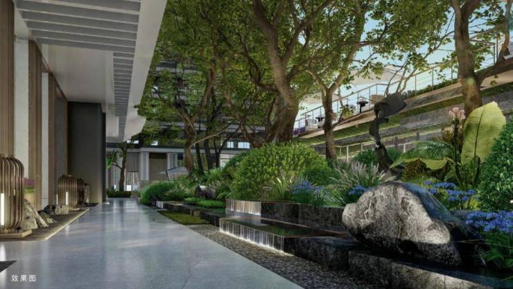 中央雲璟将社区整体抬高约3米,进一步增强外界对老钱居住边界的敬畏。约4.5米高的景观墙,搭配内部层峦叠翠景观绿植,充分营造豪宅特有的高墙大院尊贵感。这不仅能起到很好的降低噪音的作用,也更添豪宅居所的神秘感,让您感受出则繁花似锦,入则静谧尊享的私有体验。