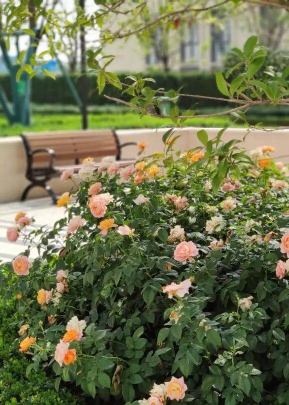 成片的果汁阳台月季,四处可见的栀子花海,满墙的风车茉莉……非常耐看,也颇为壮观。