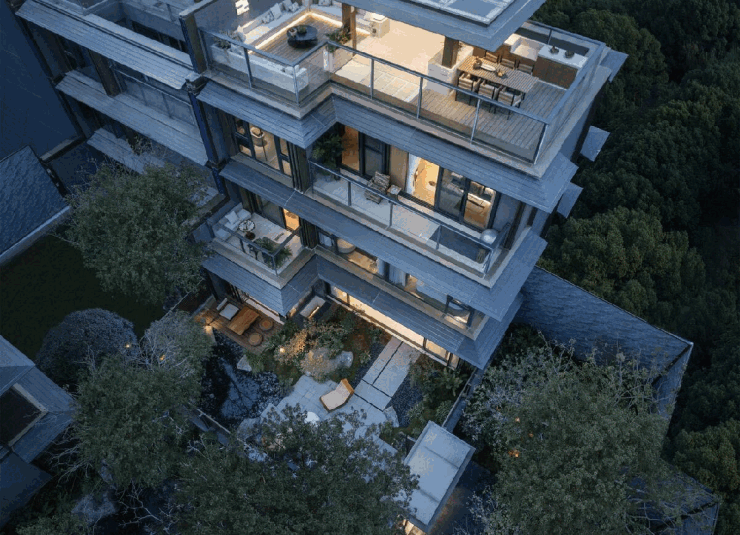 项目创造了昆山首个一墅六园联排,做到首层庭院花园、二层阔景阳台+私享露台、三层主卧星空露台+北露台、四层屋顶花园的设计,以全域观景视野,勾勒有天有地的360°整栋院墅逸境,实现每一套、每一层的景观平权。