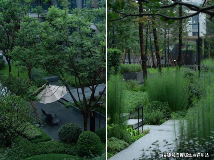 整个组团的植物,看得出来是被精心挑选过的,树形优美、长势良好。特别难得的是,与一般小区的绿化只有绿植不同,悦府还配置了各种低维护花境,缤纷的色彩使小区多了一份浪漫和松弛。而小区的水景、观景台,也是和样板房原汁原味的同款。这种把示范区变成实景兑现,是华润置地的诚意,更是华润置地的能力!