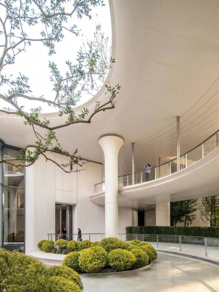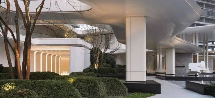 配合周边的绿植与行道树,犹如一道优雅的结界,从喧嚣到宁谧唤醒生活的诗意,带来繁华与宁静的江畔相逢。