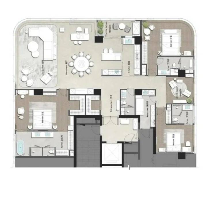 长江天际的建筑体量,沿着江畔形成了非常独特的Y型布局,为每栋楼层都提供了临江全视野的最佳条件。