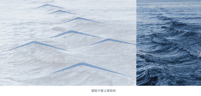 单元幕墙上的金属构件与宋代画家马远《水图十二卷》中“长江万顷”的肌理意象不谋而合,也使得传统绘画中长江流水的历史景致以另一种方式在现代城市中重现。