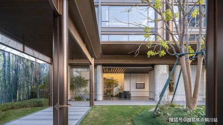 下沉水院串联起会所的各个功能区,以丰盈的场景构建圈层的亲密社交。设计借鉴传统园林的“借景”之法,会所与庭院界面以大面无框落地玻璃,引景入室,让怡然自得的山水之乐融入日常。