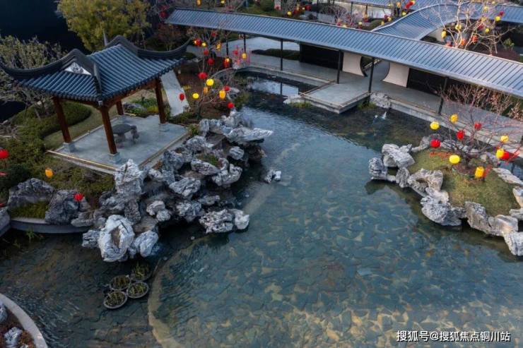 园林景观的营造堪称中式美学的现代复兴。特邀苏州园林设计院主笔,师法寄畅园、蠡园等江南名园精髓,打造约1.5万㎡的江南园林盛景。"双园规制"下,南园揽九里河之水,北园拥人造叠山,全冠移植的名贵树种与非遗香山帮工艺打造的亭榭相映成趣,步移景异间尽是江南雅韵。更难得的是,社区内超万方水景与西侧九里河风光带自然呼应,形成"内外双水景"的生态格局,让居者在城市中重拾"枕水而居"的诗意。