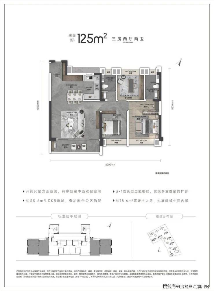 建面约112㎡三房两卫,边户设计,南北通透,南向约7.1米双阳台,跟豪宅尺度相当,客厅开间也非常的大,主卧还是套房式设计,生活舒适度拉满!