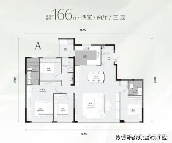 •建面约143m²中央环岛——客餐/厨/阳台一体化,阳光充沛的中央环岛,家庭生活与社交活动的欢聚主场