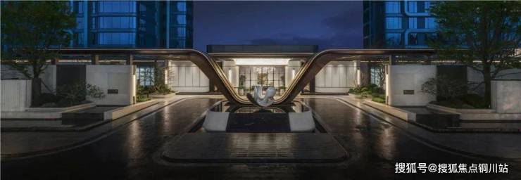 小区大门以V字造型建筑致敬黄金水道,寓意扬帆远航。
