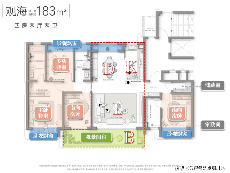 建面约183㎡四房两厅两卫,功能、收纳、空间完美平衡: