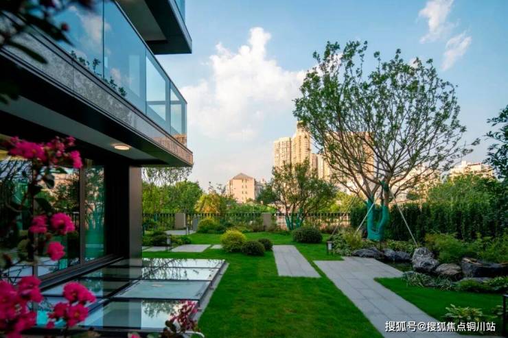 花园入户,门前绿地,约230㎡的庭院,将世间的美好景物皆收藏于此。围合近一亩前庭后院,有天有地有院落;建筑空间与庭院景致自然嵌合,立于庭院中,视野由近及远,树、河、湖逐次展开,收放有度,一切自如。