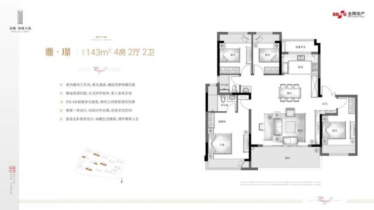 项目提供了建筑面积约 112-175㎡的三房、四房户型,丰富多样的选择满足了不同家庭结构和需求的购房者。以 143㎡户型为例,入户处预留了独立玄关空间,精致实用,既能增加收纳功能,又能营造出归家的仪式感。客厅方正宽敞,可容纳家庭的众多场景,无论是亲友聚会还是日常休闲,都能轻松应对。南向连接观景阳台,不仅增加了室内采光,还让业主可以尽情欣赏周边美景。厨房采用 L 型操作台设计,洗切炒流线工作更加顺畅,让烹饪成为一种享受。四个卧室均带飘窗设计,可将室外景观引入室内,为主人营造出惬意的居住氛围。主卧套房设计,带独立卫浴,方便主人日常生活,彰显了居住的私密性和尊贵感。