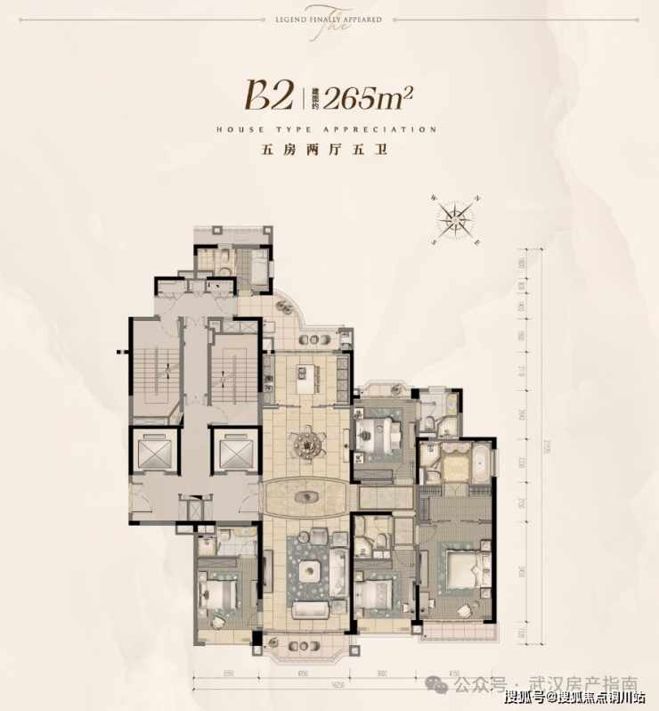 全是大平层豪宅!主力是265㎡(五房五卫)、275㎡(六房四卫)、297㎡(六房四卫)这几个经典户型。