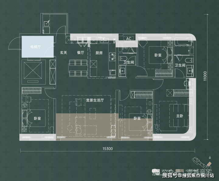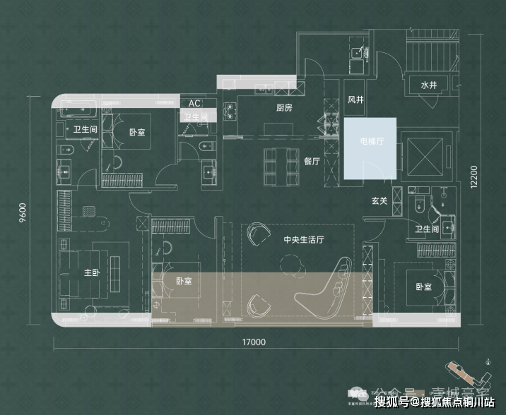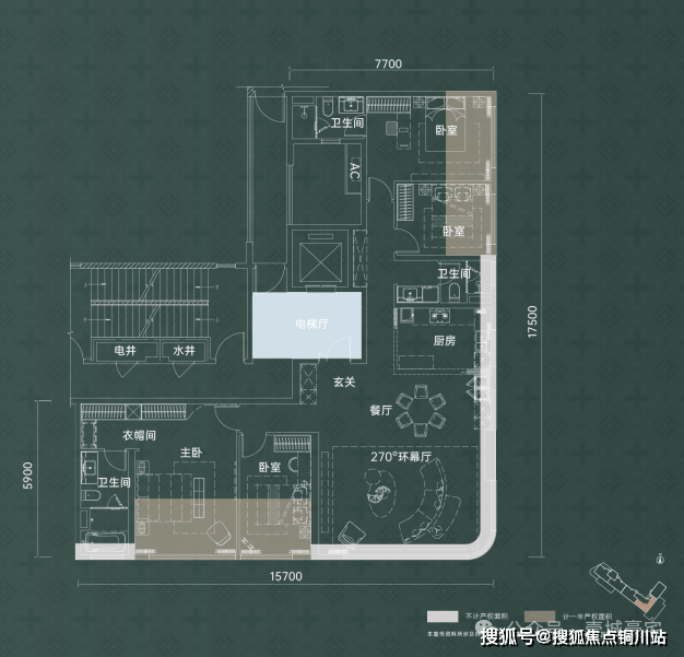 这就意味着,400万左右的总价,可以拥有传统三代住宅中170㎡的户型。而它的优势也不仅在于得房率高、使用面积大,在户型格局上也十分出彩。