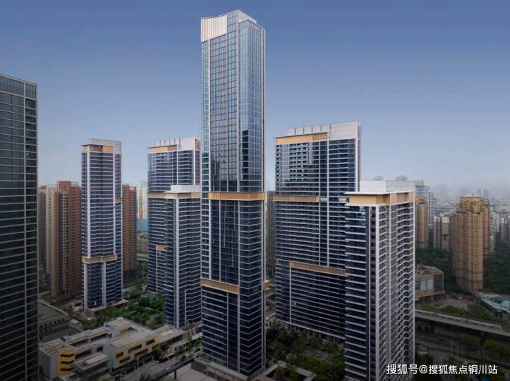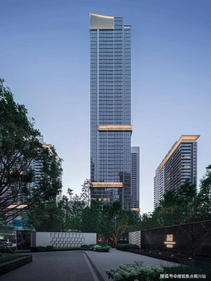 外立面运用国际视野和审美,设置竖向型材线条加强挺拔感,展现长江波光浩荡质感,以大江大河气韵,致敬土地文化。搭配“风帆”塔冠造型,融合鎏金腰线瑞字纹穿孔铝板,成为瑞府藏家身份的专属昭彰。