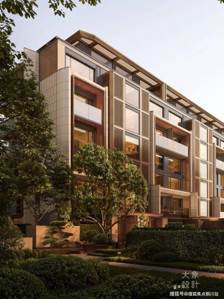 高层建筑采用现代格构体系设计,通过仿石铝板与玻璃的虚实搭配,选用高级灰与大地色系,质感沉稳内敛。叠墅延续蒙德里安格构手法,强化竖向构图与独户体验,设置层层退台及进深2.4-3米进深露台,拓展生活场景,也可打造屋顶花园。