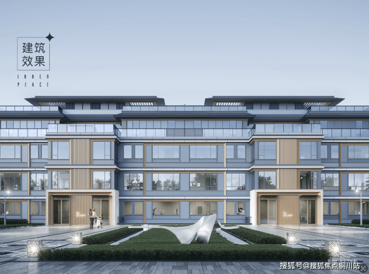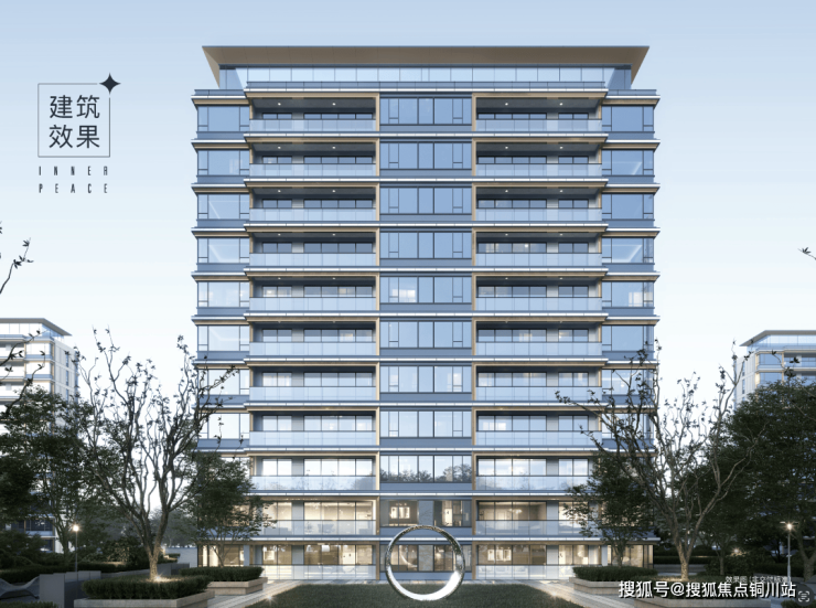 看效果图,晶莹通透的立面,在阳光和灯光下还映出点点星芒,有种钻石般的璀璨华丽感。叠墅更是美到心坎里,4层建筑轻盈优雅,像一片冰晶玉简漂浮空中,香槟色金属格栅和铝板撞色,切割出视觉韵律感~
