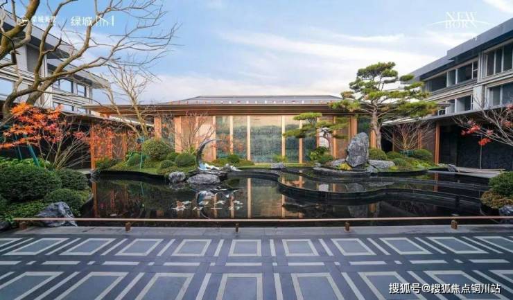 二进月影揽翠,以宋式园林为蓝本,奢贵树种、艺术叠石、造型雕塑漂浮于镜面水景之上,交相辉映、俯仰相合。