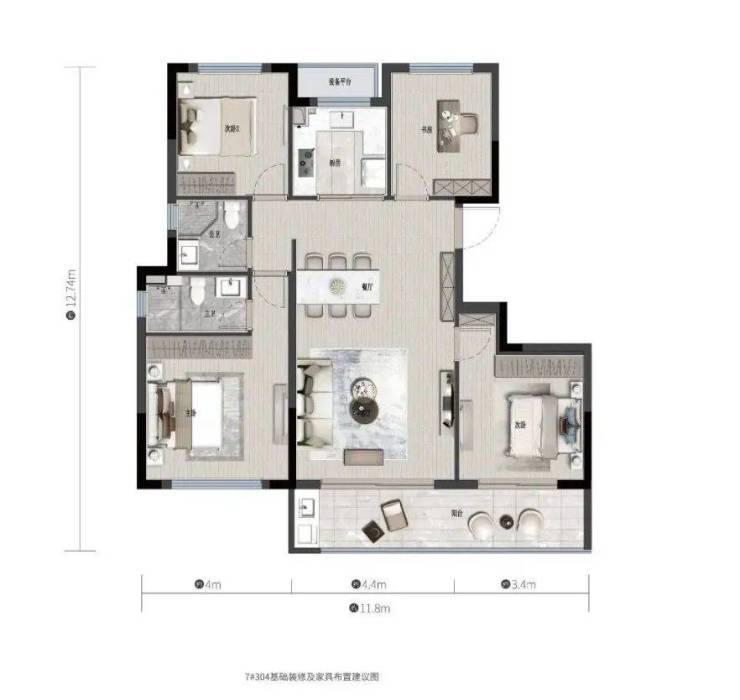 约4米主卧面宽 | 约7.8米跑道式阳台 | 约12.7米LDKG厅