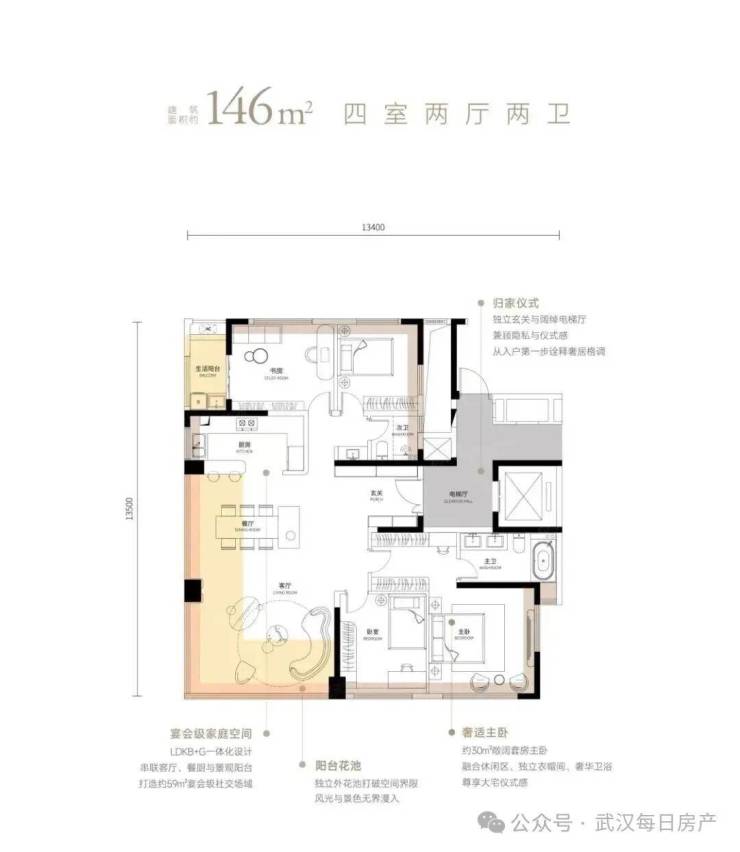 除了即将加推的建面约127平,项目1号楼还有少量建面约146平户型在售,超绝户型设计,放眼全武汉,都能跻身“年度户型优选”!