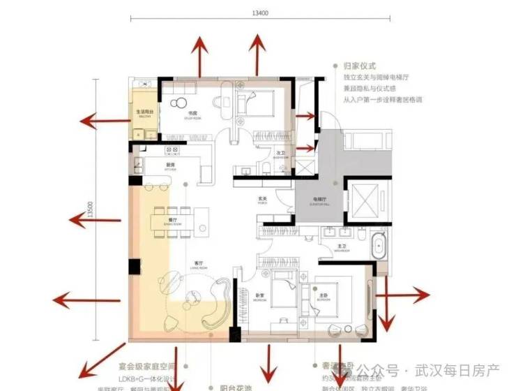 毫不夸张的说,武昌源著在户型设计上花了大功夫,不仅实现了准四代住宅的“空间越级”,还做到了“尽善尽美”,生活在其中的每一个家庭成员,都能自得其乐!