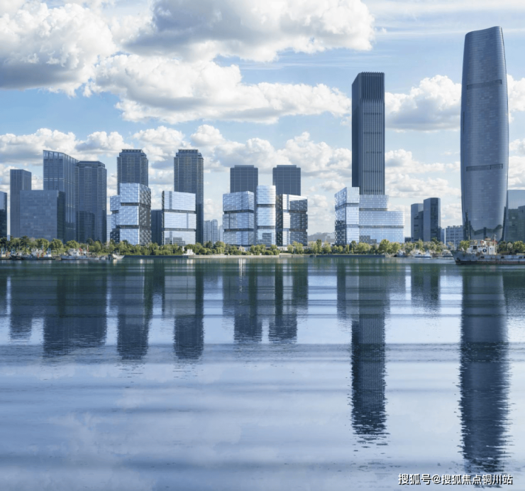 由C1、C2和C3地块组成的建筑群,如八面水晶屏风依江错落展开。外立面建筑造型灵感,从宋代马远《十二水图》中的《长江万顷》汲取灵感。建筑团队将水墨画中江流的动态走势、虚实节奏与留白意境,转化为立体的建筑语言。
