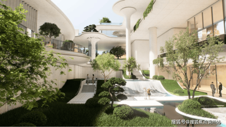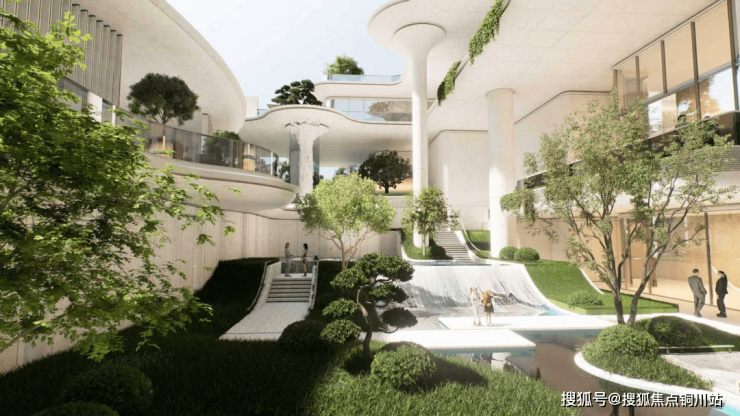 以“竖向枢纽”为动线,项目通过飞梯与公共交通,将住区的宁静、万象城的繁华、空中会所的私享,以及公园街区的艺术气息编织在一起。这种深度又微妙的互联互渗,正是“超级底盘”的精髓所在——它让建筑不再是一个孤立的点,而是与城市网络紧密咬合、互为补充、共同进化的有机体。