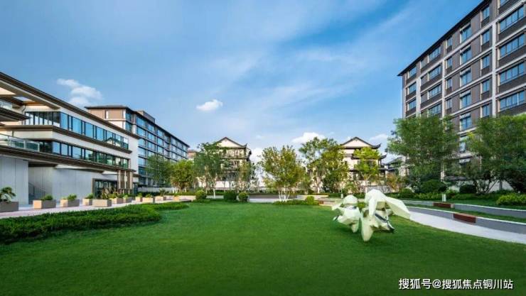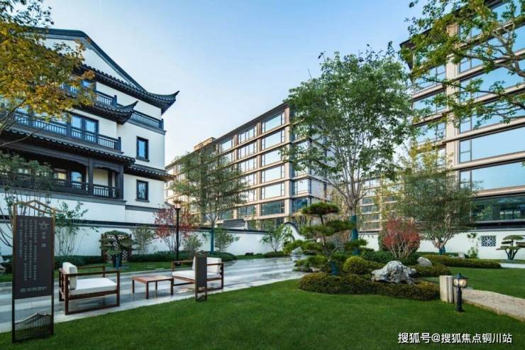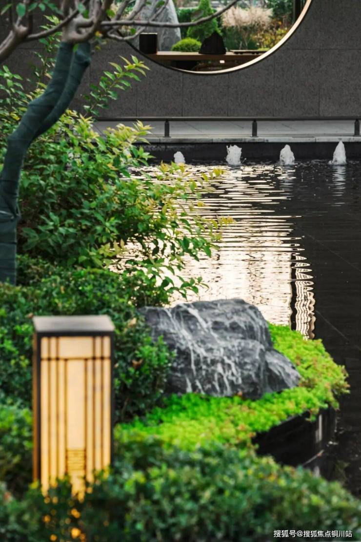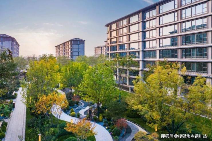 以约6000㎡T形中心花园形成山水骨架,“隐士观”为命题的庭院空间嵌套贯穿,从而将自然景观与人文景观融汇连通,碧树繁花间欢声流淌,居者隐逸其中,清风明月,洗人性灵,沐心养志,自然顺势成为人生的美好注脚。
